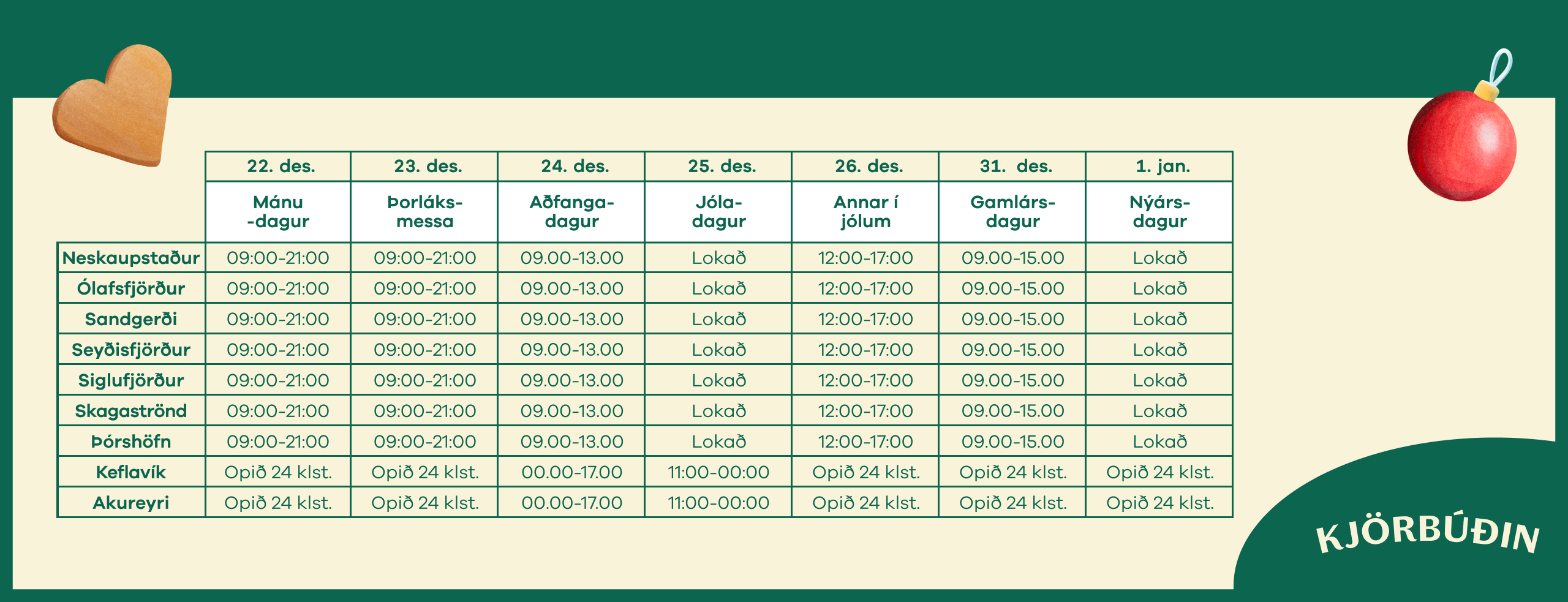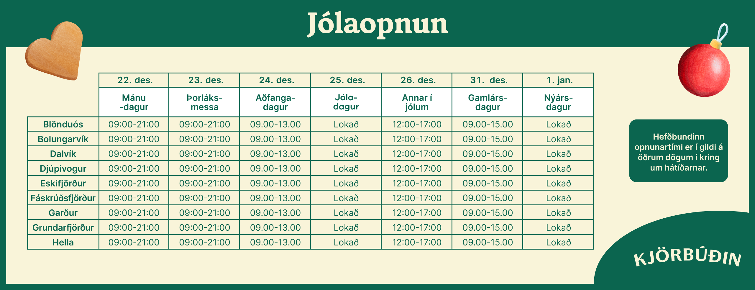 Skoðaðu opnunartíma kjörbúða um allt land og finndu bestu staðina til að versla í nágrenninu.